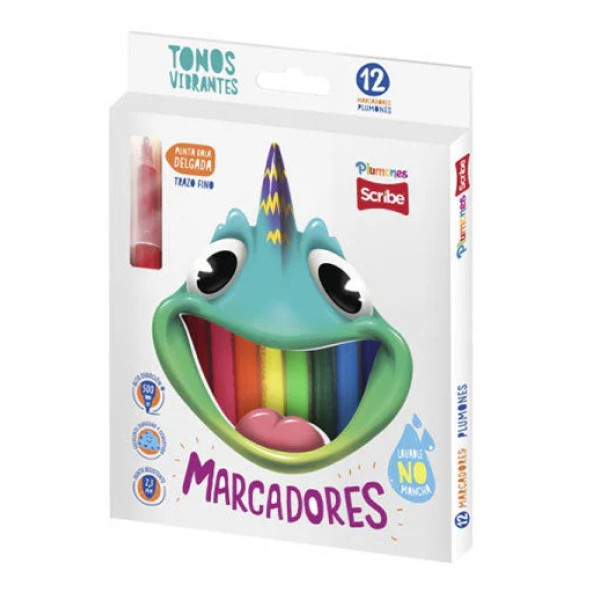 Contiene 12 plumones, con punta delgada, añade un toque de creatividad a tu vida con nuestros marcadores de alta calidad. No manchan, no son tóxicos y ¡son lavables!